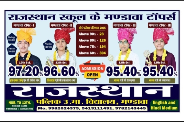 Rajasthan Public School, is the top-graded institution (both Hindi and English medium) in Mandawa affiliated with the RBSE (Rajasthan Board of Secondary Education). The school is committed to excellence in education from Nursery to Higher Secondary level.